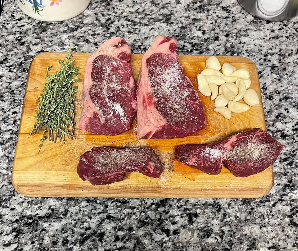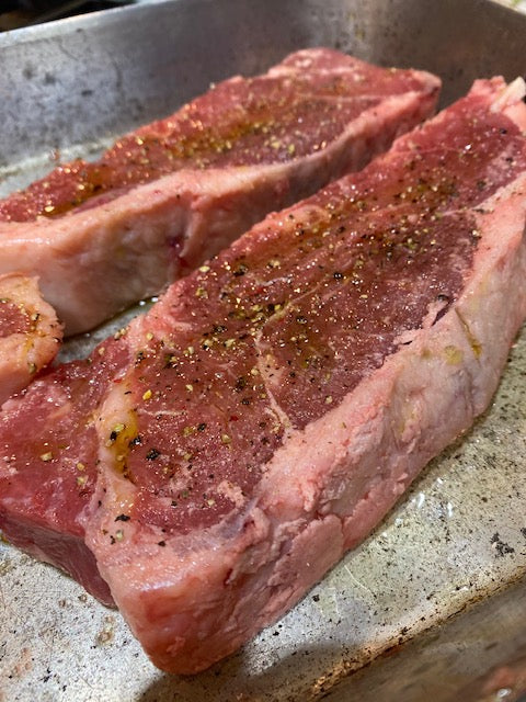 The NY Strip Steak is a flavorful and tender beef cut, renowned for its marbled texture. It is cut from the short loin of a cow, prized for its high quality and juiciness. Perfect for grilling and broiling, the NY Strip Steak has a distinctively rich, beefy flavor. It is ideal for any celebratory, special occasion dinner.
